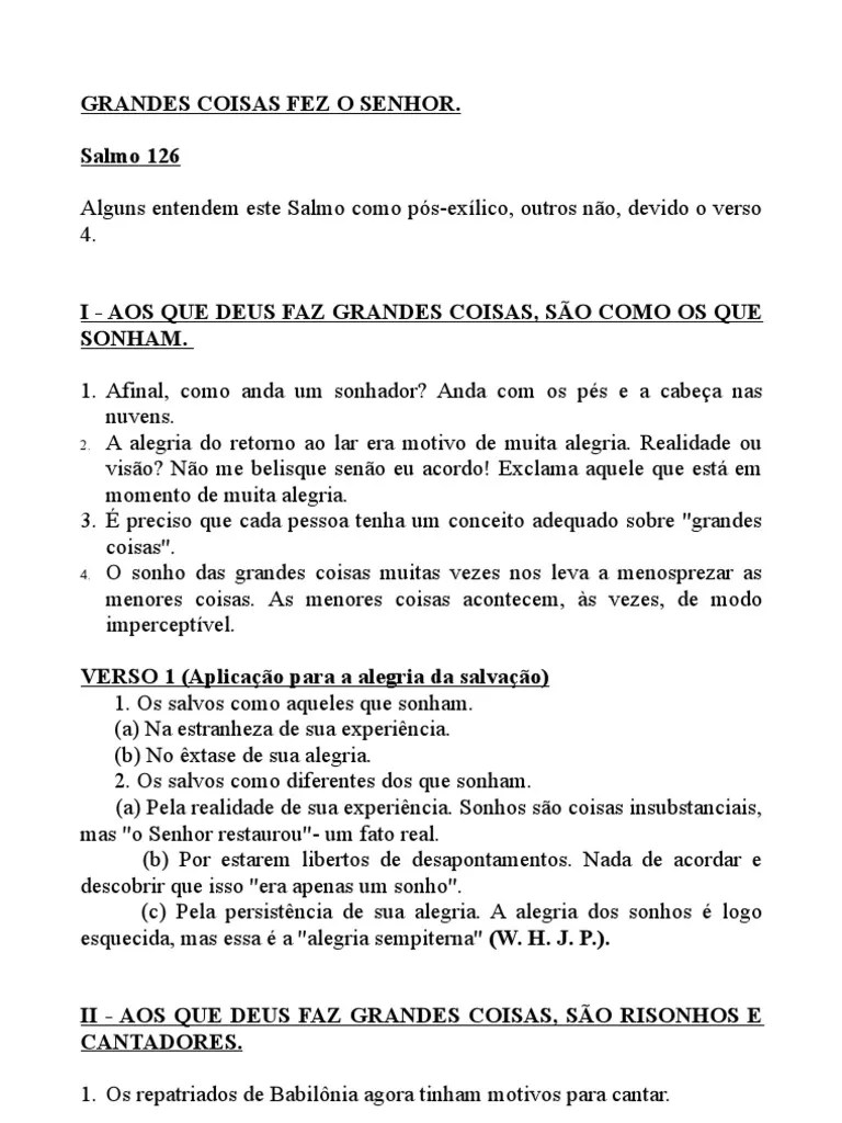 Alias aqui nos salmos, tenho observado na segmentação de 126 deles, incluindo este, que sempre é deus quem faz todas as coisas por nós ou seja, deus sempre está no controle de tudo e de todos e de todas as coisas... Três dias sem jesus tema:. O salmo 126 traz o louvor a deus pela restauração que ele fez tirando o povo de israel do cativeiro da babilônia, mas também que continua a transformar seu povo a cada dia.